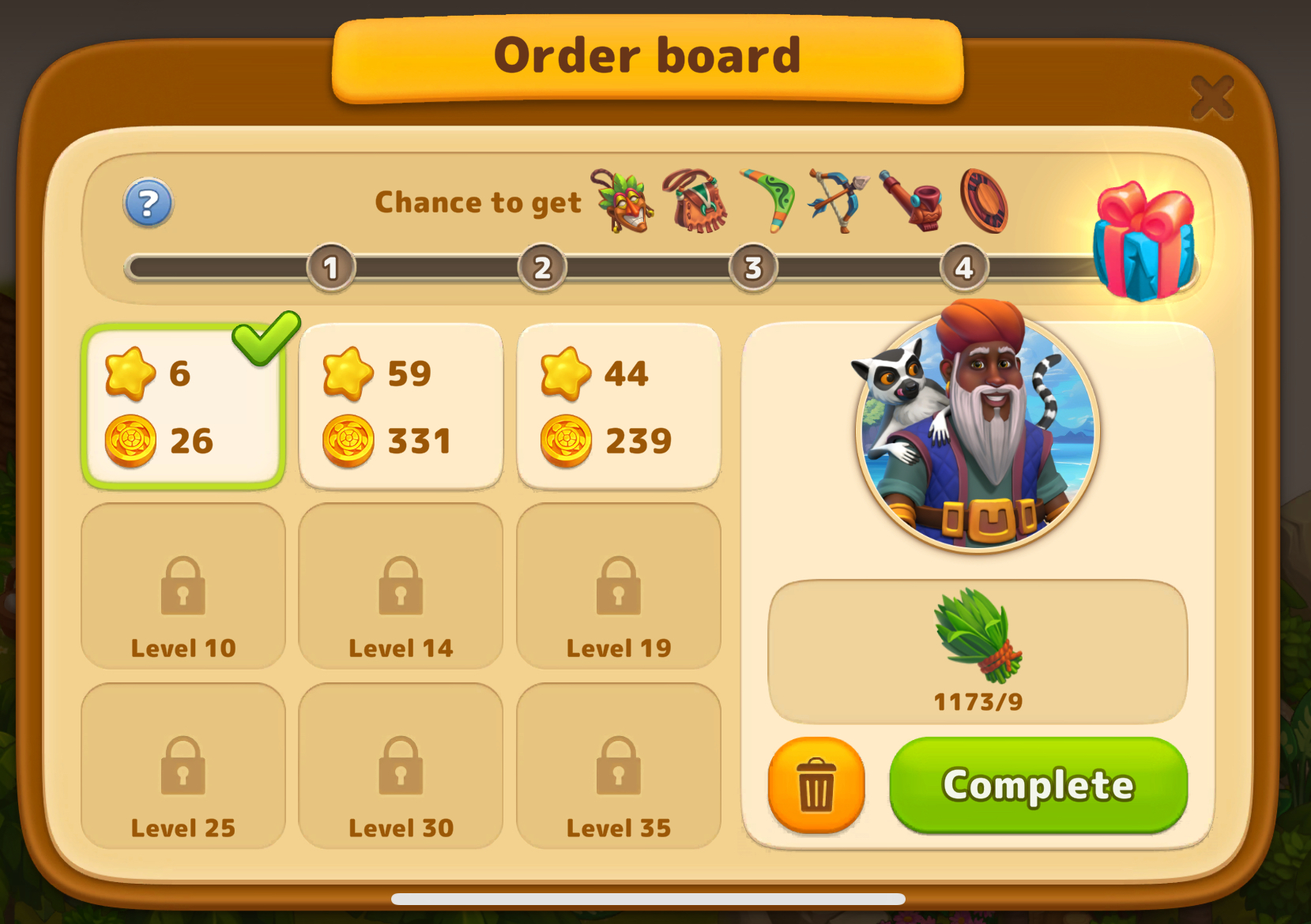 Tasks: Bipoto regularly posts orders specifying exactly which resources and in what quantity he needs.