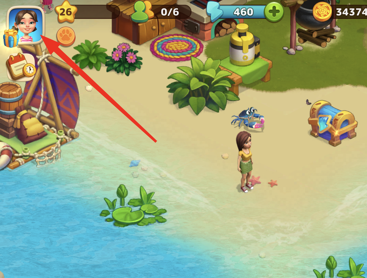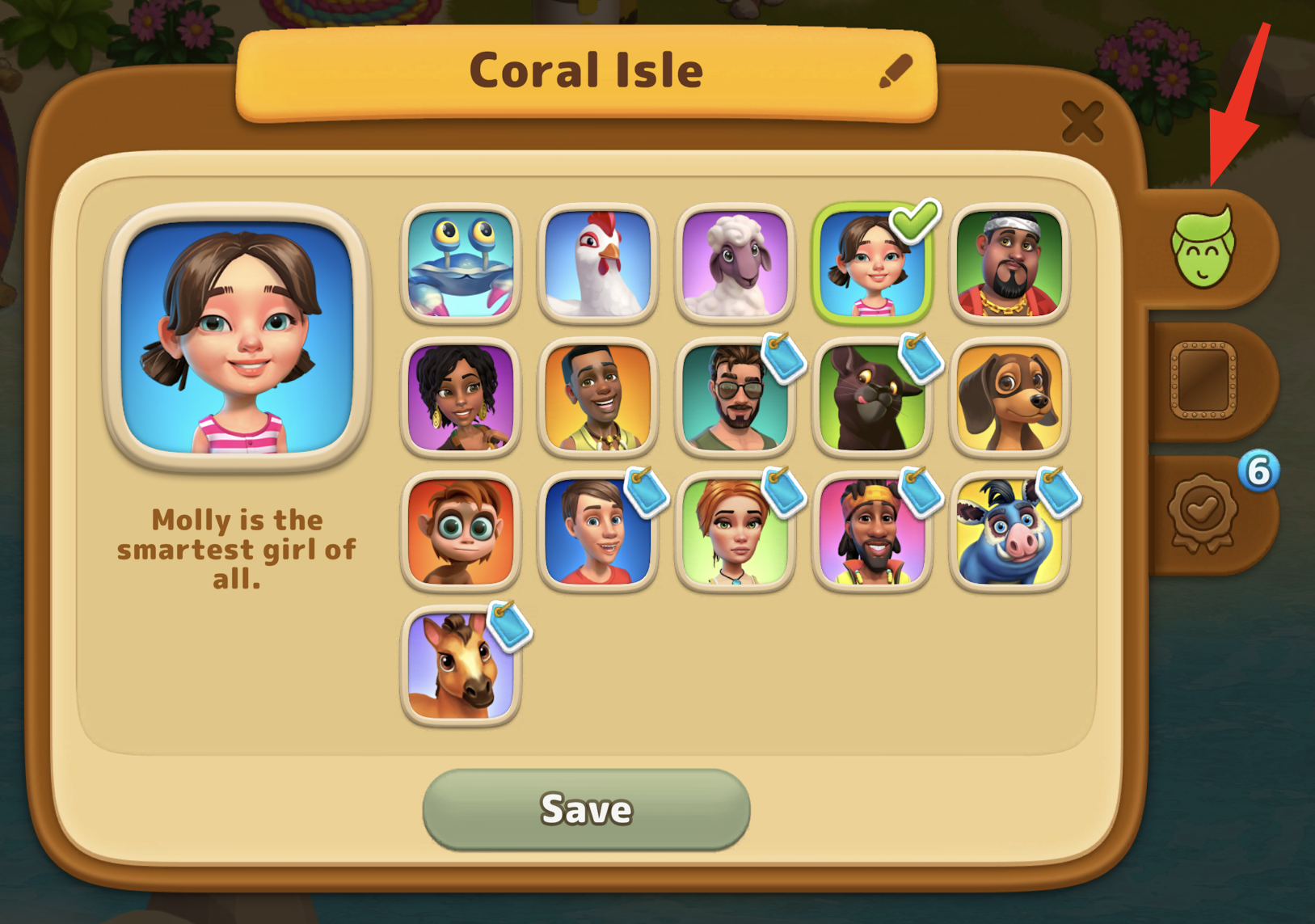 Select the Icon: Choose the first icon with the face to access your character settings.