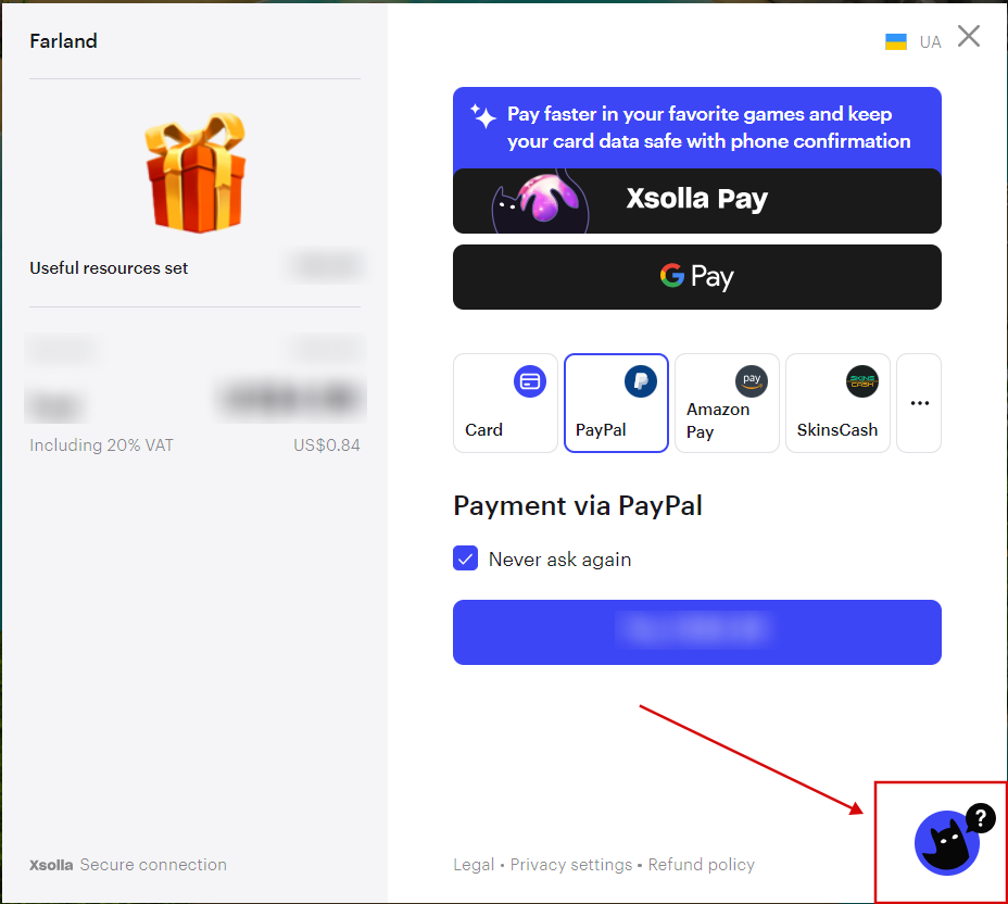 Als je vragen hebt over in-game aankopen, neem dan contact op met het Xsolla-ondersteuningsteam.