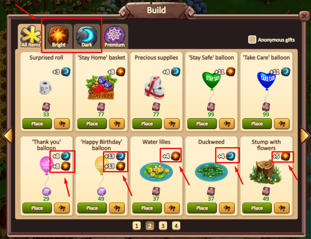 Podczas pobytu na wyspie swojego przyjaciela, możesz zobaczyć zakładkę „PREZENTY” w dolnym prawym rogu, gdzie znajdziesz użyteczne prezenty dla swoich przyjaciół. Te prezenty dają ci jasne lub ciemne runy, gdy umieścisz je na ziemi swojego przyjaciela.