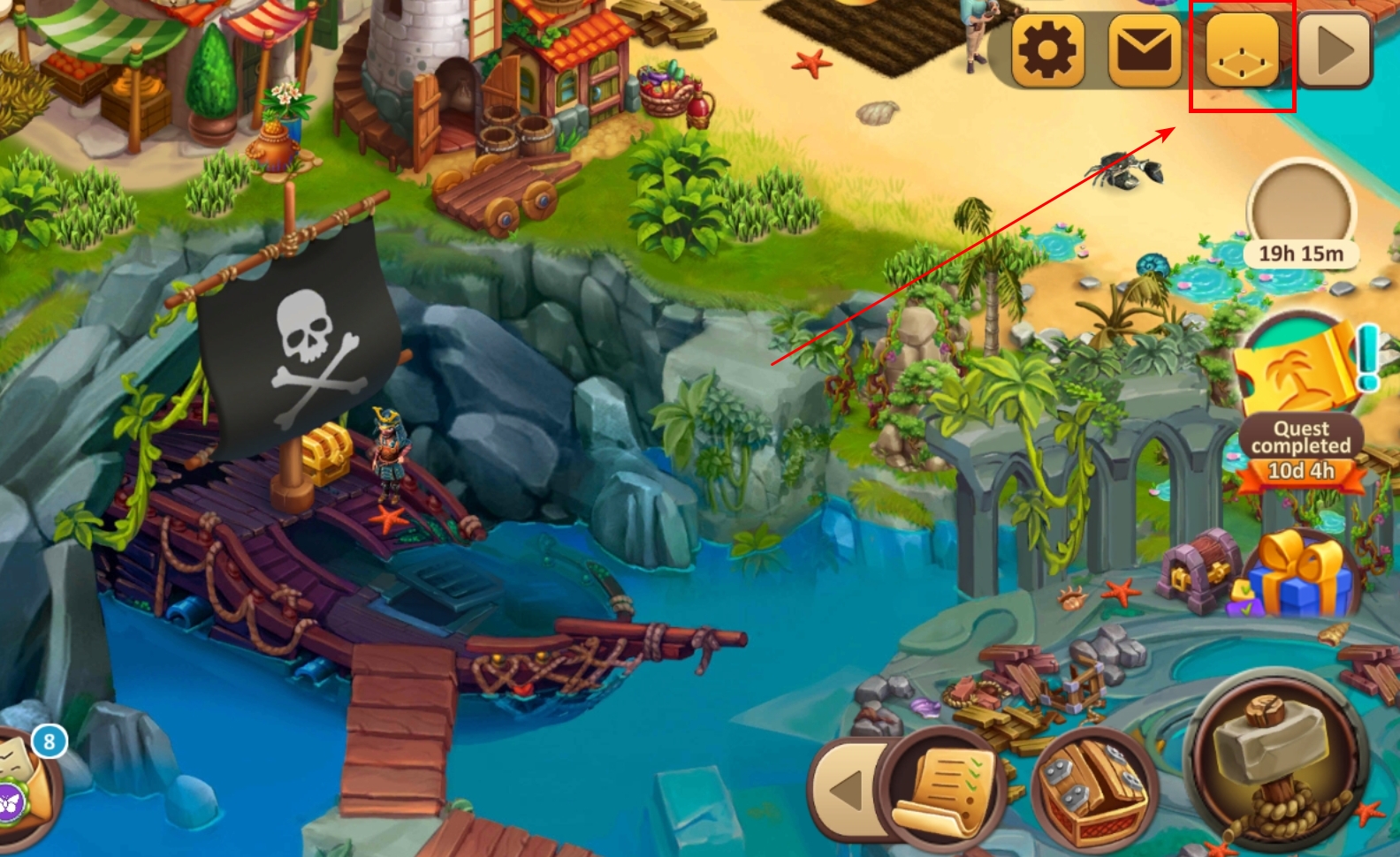 Jeśli masz problem z otwarciem Złotej Skrzyni na Statku Pirackim w wersji mobilnej, użyj przycisku trybu Ukryte Obiekty.