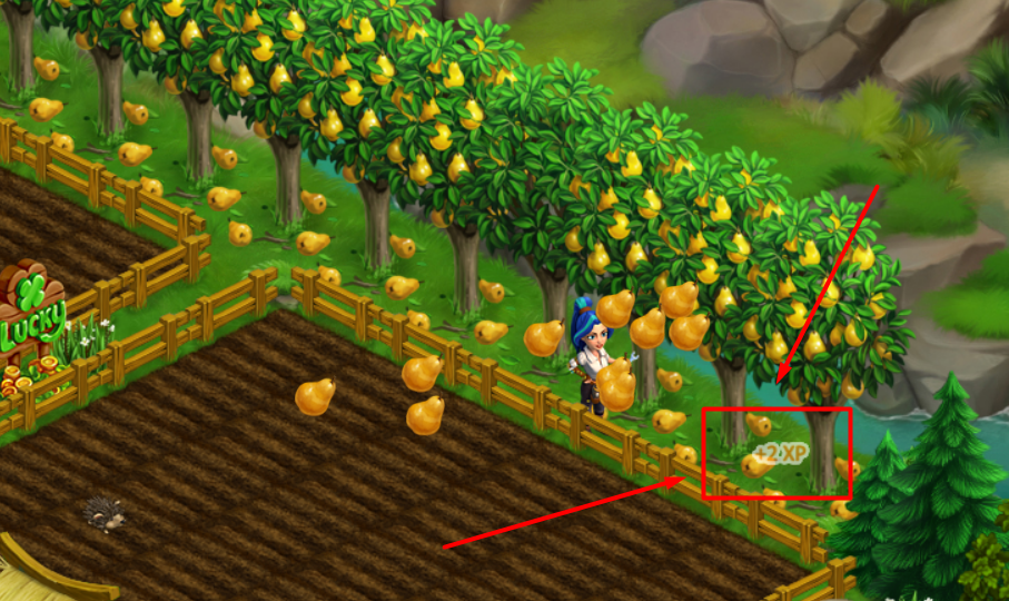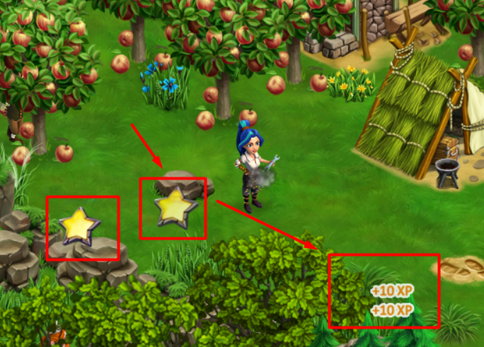 Możesz awansować na nowy poziom, zdobywając punkty doświadczenia. Aby zdobyć punkty doświadczenia, możesz wykonywać wiele różnych działań w grze, na przykład wykonywać questy, sadzić drzewa i zbierać plony, dekorować swoje osiedle oraz czyścić je z kamieni/drzew/trawy.