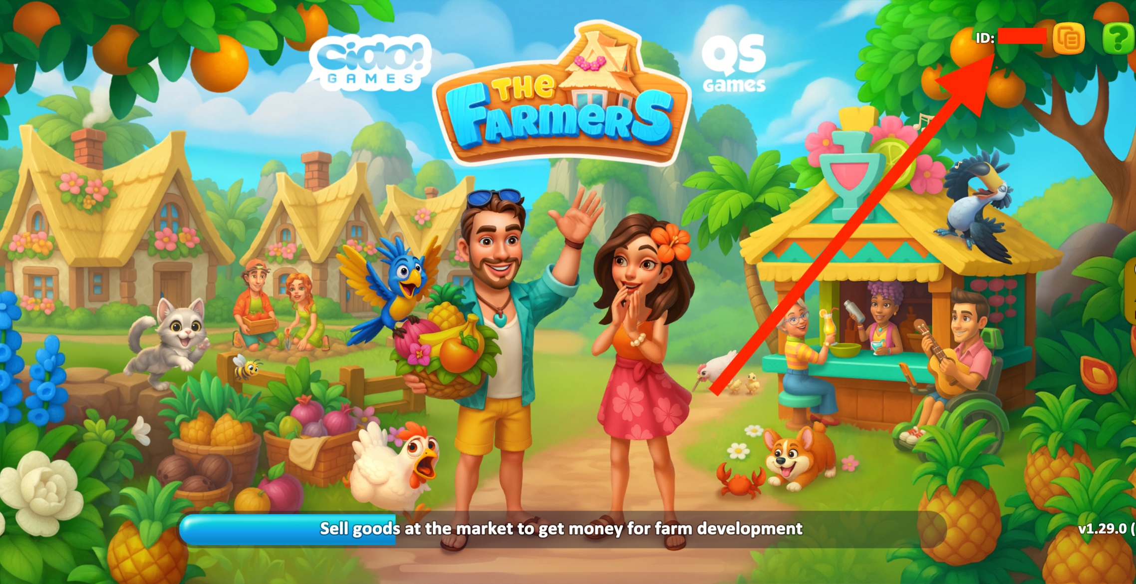 Na tela de carregamento principal: Seu ID é exibido na tela principal (ou tela de carregamento). Você pode copiá-lo simplesmente clicando no número no canto superior direito.