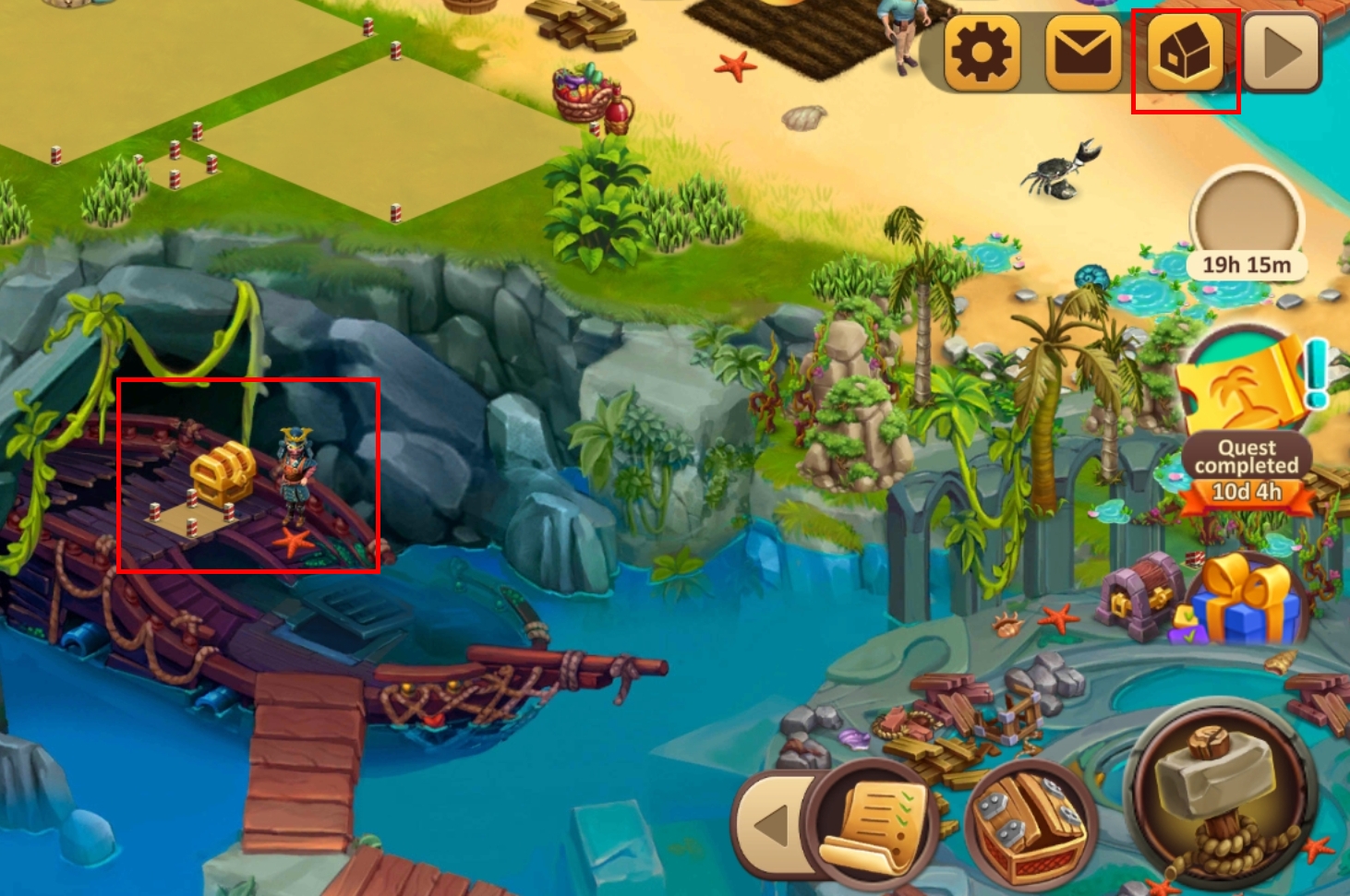 Якщо у вас виникли труднощі з відкриттям Золотої скрині на Піратському кораблі з мобільної версії, скористайтеся кнопкою режиму Прихованих предметів.