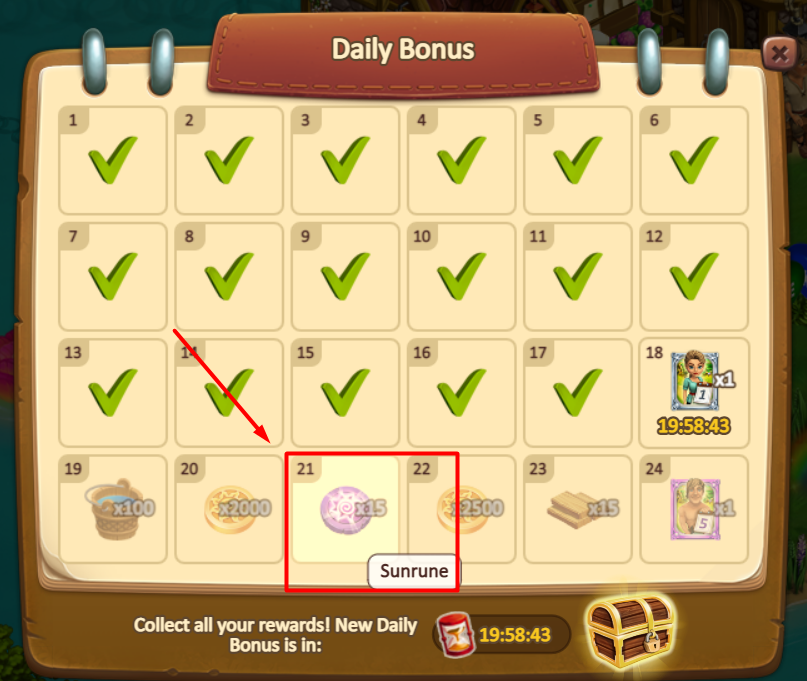 Крім того, у ваших щоденних бонусах ви можете отримати сонячні руни як нагороду.