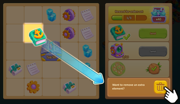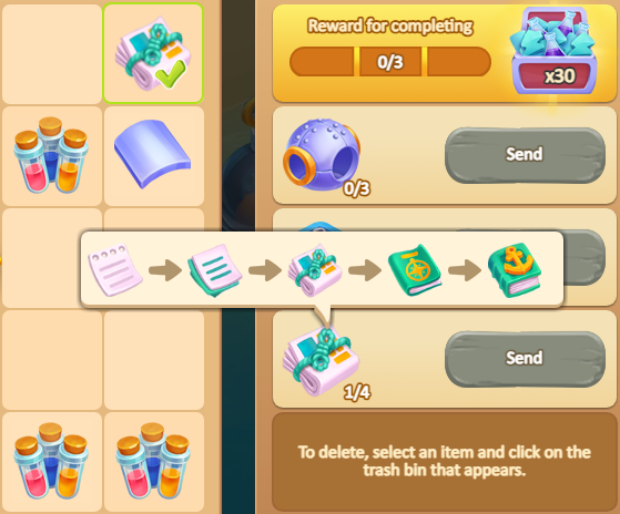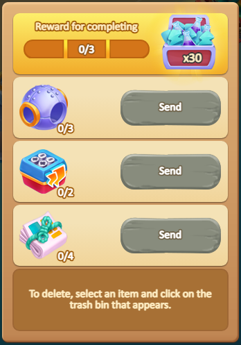 Вам потрібно поєднувати ресурси на полі, щоб отримати саме ті предмети, які вказані в завданні. Після цього натисніть «Відправити!»