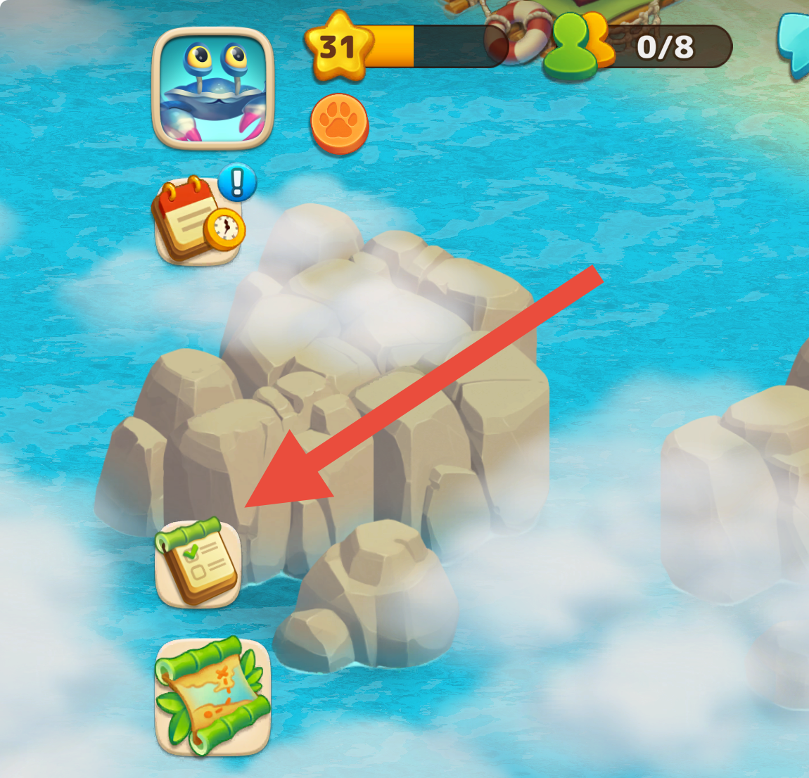 Кнопка, що відкриває квести знаходиться над кнопкою Мапа. Там ви можете подивитися перелік квестів, оцінити нагороди, які можна отримати за їх виконання та забрати нагороди за все виконані квести.